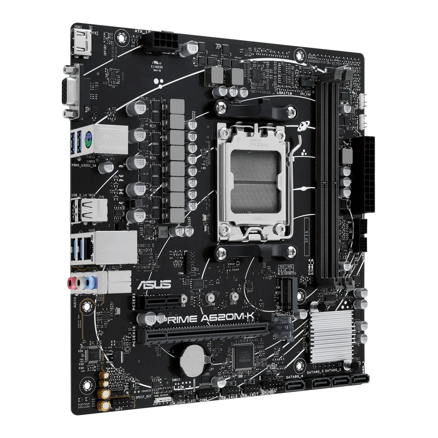 As placas-mãe da série ASUS Prime são habilmente projetadas para liberar todo o potencial dos processadores AMD Ryzen série 7000. Com um design de energia robusto, soluções abrangentes de refrigeração e opções de ajuste inteligentes, a PRIME A620M-K oferece aos usuários e montadores de PC DIY uma variedade de otimizações de desempenho por meio de recursos intuitivos de software e firmware.