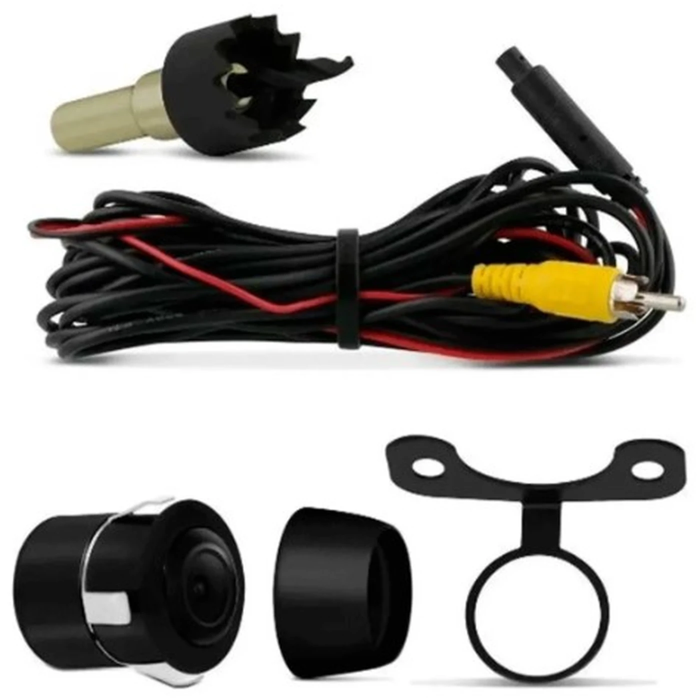 Câmera de Ré Colorida 2 em 1 Para-Choque ou Borboleta Universal Preta
