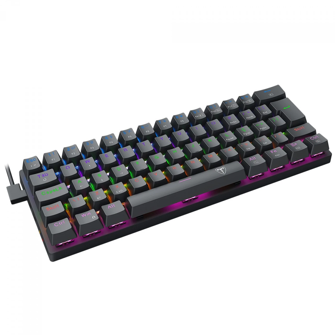 TECLADO MECÂNICO GAMER T-DAGGER ARENA PRO, RAINBOW, WIRELESS/BLUETOOTH, SWITCH BROWN, 60%, ABNT2, PRETO