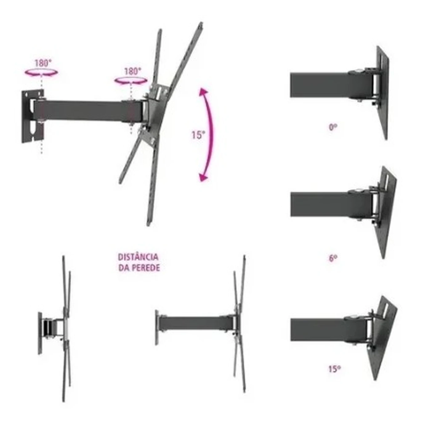 DESCRIÇÃO: Suporte articulado com inclinação para TV de 14" a 56" Preto.